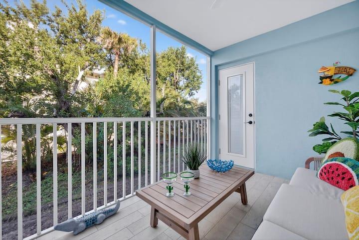 Seashells of Sanibel #3 is a new 2-bedroom,2 bath condo that is steps from the beach with a covered carport.