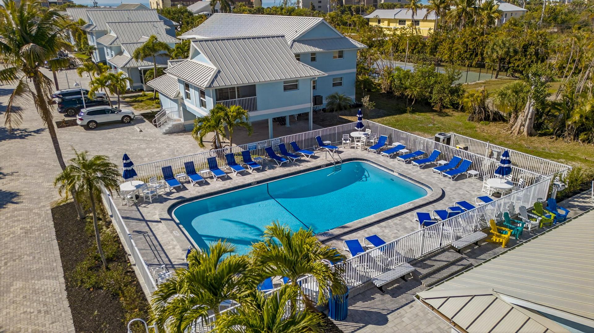 Unit 34 is ALL NEW. Enjoy an inviting open floor plan with 2BRs-2 baths plus a fully equipped Quartz Kitchen w/breakfast bar with seating. The spacious living rm offers a large smart TV and is open to the dining room. Sliders open to a screened lanai for your morning sunrise.