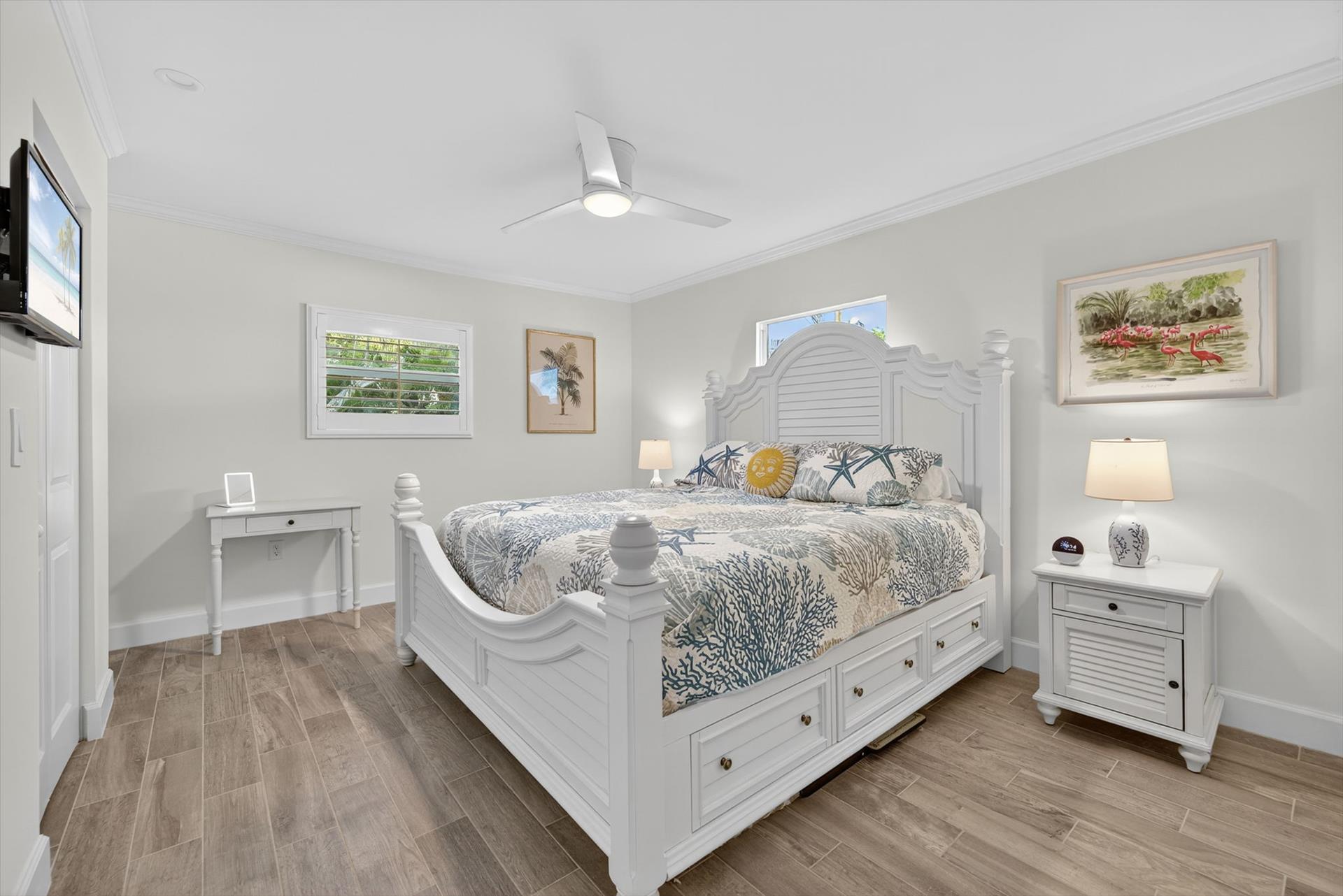 This thoughtfully designed villa-style condo offers a comfortable, private layout with two separate bedrooms, each featuring a king bed. Unique to this rental are two outdoor living spaces—a welcoming front patio and a private back lanai fully shielded from drive-by traffic. Inside, enjoy a well-equipped interior with modern smart-home lighting and climate controls, plus easy access via a covered carport. Designed for comfort, privacy, and tranquil living near the beach. No pets or events. Primary Airbnb renter must be age 30 or older. Maximum Occupancy (4 Guests Only)