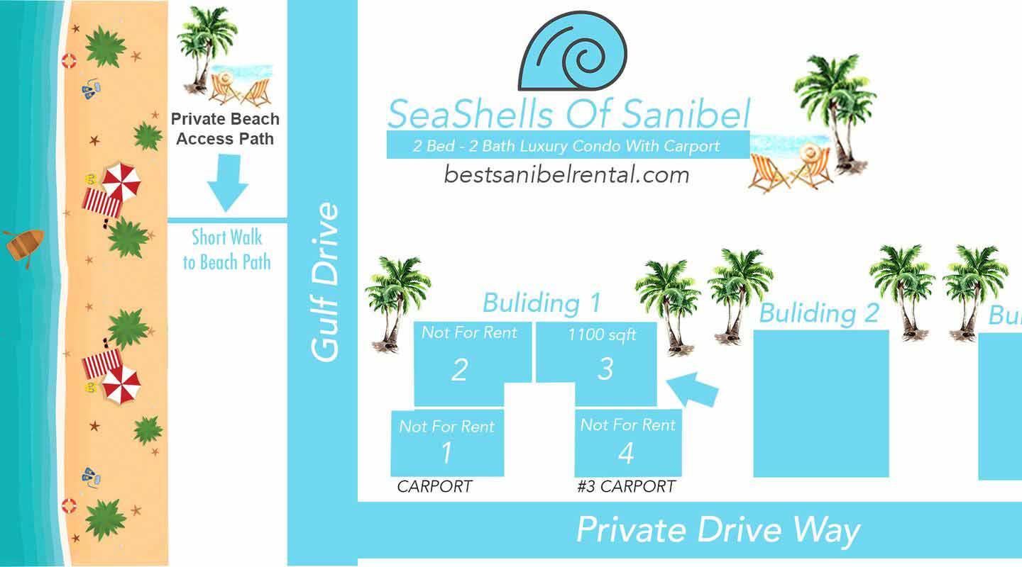 Seashells of Sanibel #3 is a new 2-bedroom,2 bath condo that is steps from the beach with a covered carport.